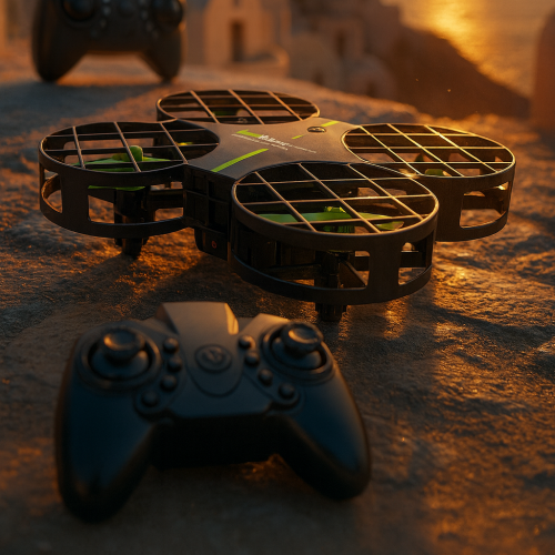 drone compacto y seguro es perfecto para principiantes y entusiastas de la tecnología. Su diseño moderno incluye una carcasa protectora que rodea las hélices, brindando mayor seguridad y resistencia a impactos.